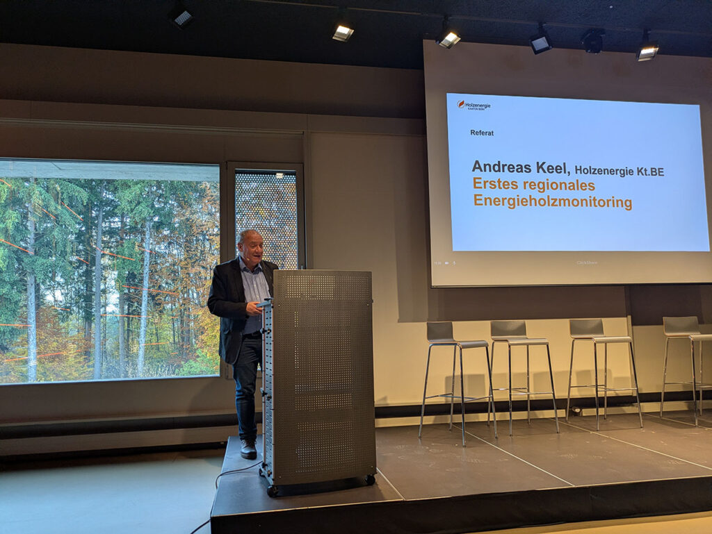 Nach der offiziellen Begrüssung durch den Präsidenten des Vereins Holzenergie Kanton Bern, Nationalrat Ernst Wandfluh, begrüsste auch der Präsident des BWB Beat Zaugg die Anwesenden. Er verdeutlichte wie wichtig der gut funktionierende Absatzmarkt des Energieholzes für die Waldbesitzenden ist, da bei jeder Holznutzung Sortimente anfallen, welche nicht anders genutzt werden können. Er stellte ebenso den Bezug zur Holznutzung in stadtnahen Wäldern her und fragte, wieviele von denjenigen, die sich an der Holznutzung stören wohl dank der Holznutzung nicht frieren müssen im Winter. Anschliessend folgten die Referate rund um das Waldenergieholz. Darunter auch, welche Chancen dieses für die Waldbesitzenden birgt von Markus Moser, Frienisberger Holz AG. An diesem Nachmittag erfuhr man im Referat von Thomas Rohrer, Lignocalor AG auch, welche Herausforderungen mit der Versorgung von Waldholz einher gehen können, wieviele tausend Lastwagen Waldenergieholz und Altholz allein in die Energiezentrale Forsthaus gelangen sowie welche Überlegungen zum Strommix die EWB anstellt. Die Tagung versprach ein besonderes Highlight mit der erstmaligen Veröffentlichung der Ergebnisse des regionalen Energieholzmonitorings 2024 mit dem Fokus Kanton Bern.